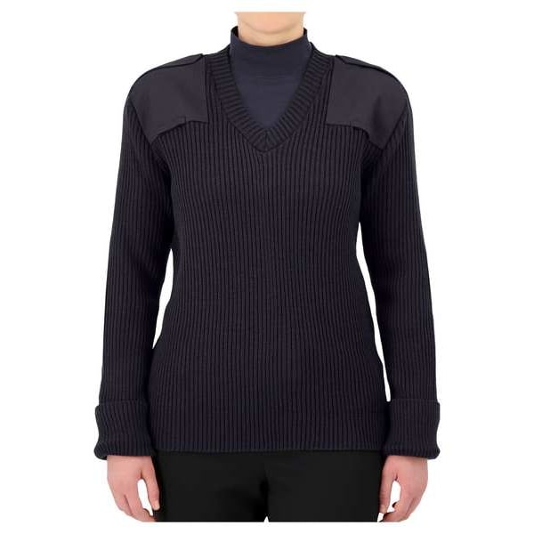 V-Neck Military Sweater, Size M, Color Dark Navy, Material 100 Percent Acrylic, Fits Chest Size 43 In., Length 27 In., Sleeve Length 24-1/2 In., Garment Style Commando Sweater, Binding Pullover, Pockets No, Type Regular