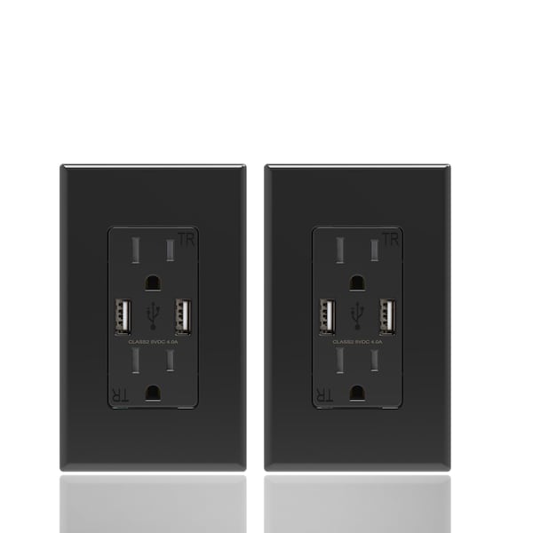 - •PACK OF 2 – In-wall duplex receptacles with two USB outlets replace a standard duplex electrical outlet for powering, total high-speed output of 4.0 Amp. Reduce cable clutter with this wall outlet with USB ports offering flexible power and charging options. No more USB adapters! 2 outlets are included.