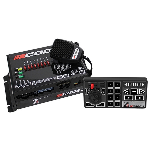 Adjustable Backlight Brightness, Public Address Microphone, Controller has Three Distinct Zones: Sirens and Primary Lighting, Auxiliary Devices and Traffic or Warning Function