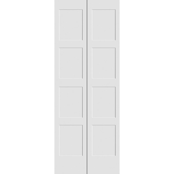 24" x 80" Primed 4-Panel Equal Panel Shaker Bifold Door and Hardware