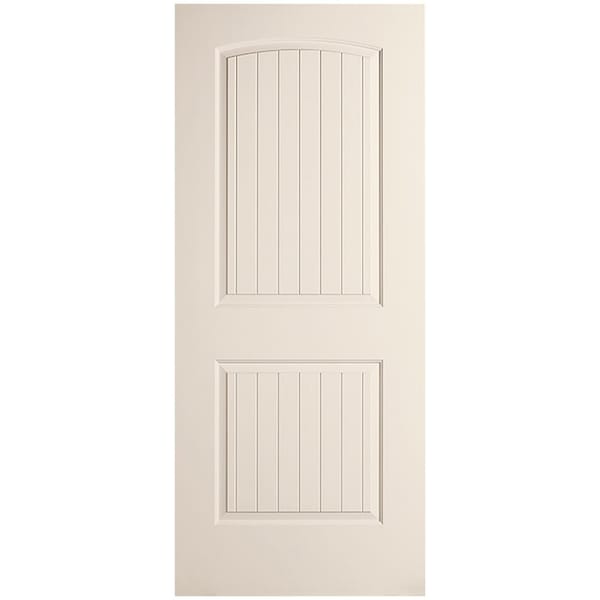 30" x 80" Primed 2-Panel Arch Top V-Groove Santa Fe Molded Hollow Core Slab Door