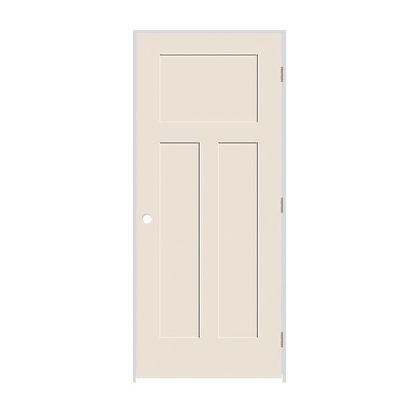 30" x 80" x 1-3/8" Primed 3-Panel Craftsman III Molded Hollow Core 4-9/16" LH Prehung Door (Discontinued)