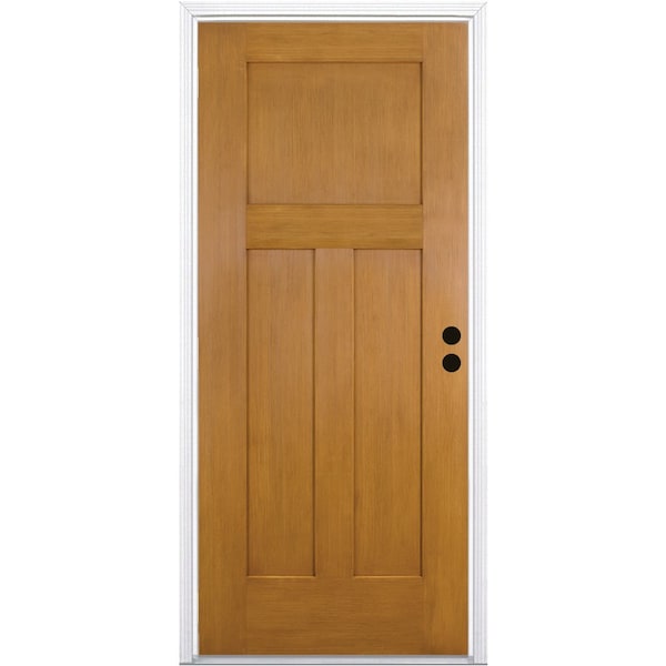 CODEL Doors' Fiberglass Front Doors are built to last and our 3-Panel Shaker Exterior Fiberglass door can add substanial curb appeal to your home. This fir grain 3-panel shaker fiberglass door . The fiberglass doors are virtually maintenance free and won't dent, warp rot, or split. Our premium prehung door unit almost eliminates air and water inflitration with a variety of premium features. Door comes primed and ready to paint any color to match your home's style.