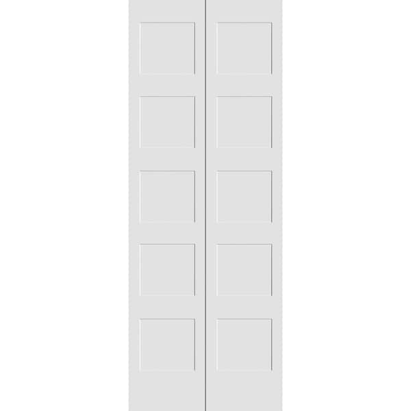 36" x 80" Primed 5-Panel Equal Panel Shaker Bifold Door and Hardware