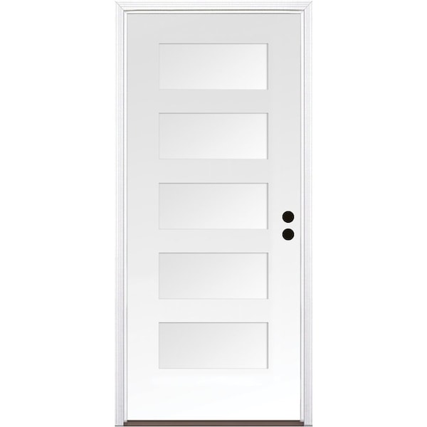 CODEL Doors' Fiberglass Front Doors are built to last and our 5-Panel Shaker Exterior Fiberglass door can add substanial curb appeal to your home. This smooth 5-panel shaker fiberglass door . The fiberglass doors are virtually maintenance free and won't dent, warp rot, or split. Our premium prehung door unit almost eliminates air and water inflitration with a variety of premium features. Door comes primed and ready to paint any color to match your home's style.