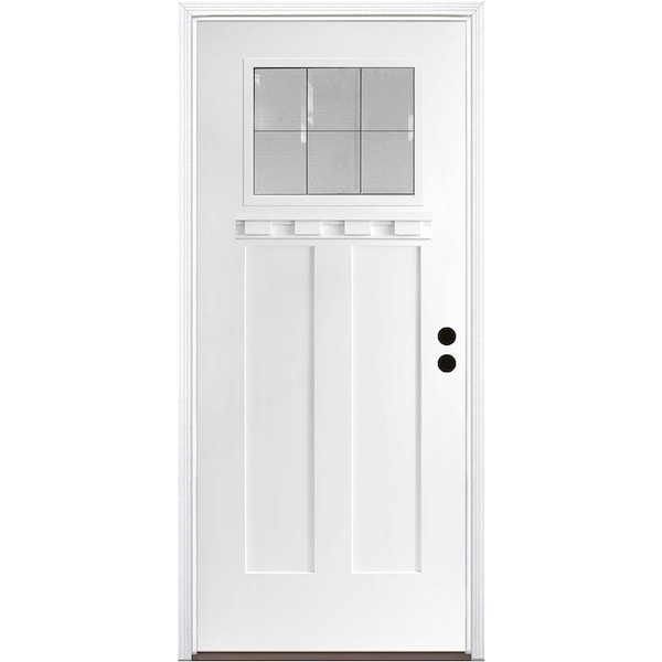 CODEL Doors' Fiberglass Front Doors are built to last and our 3-Panel Shaker Exterior Fiberglass door can add substanial curb appeal to your home. This smooth 3-panel shaker fiberglass door comes with 6-lite patina glass in a 3-Lite frame and dentil show for a true craftsman design. The fiberglass doors are virtually maintenance free and won't dent, warp rot, or split. Our premium prehung door unit almost eliminates air and water inflitration with a variety of premium features. Door comes primed and ready to paint any color to match your home's style.