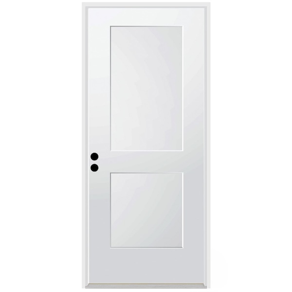 CODEL Doors' Fiberglass Front Doors are built to last and our 2-Panel Shaker Exterior Fiberglass door can add substanial curb appeal to your home. This smooth 2-panel shaker fiberglass door . The fiberglass doors are virtually maintenance free and won't dent, warp rot, or split. Our premium prehung door unit almost eliminates air and water inflitration with a variety of premium features. Door comes primed and ready to paint any color to match your home's style.