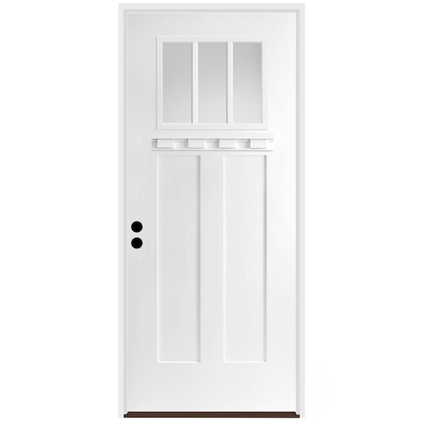 CODEL Doors' Fiberglass Front Doors are built to last and our 3-Panel Shaker Exterior Fiberglass door can add substanial curb appeal to your home. This smooth 3-panel shaker fiberglass door comes with clear glass in a 3-Lite frame and dentil show for a true craftsman design. The fiberglass doors are virtually maintenance free and won't dent, warp rot, or split. Our premium prehung door unit almost eliminates air and water inflitration with a variety of premium features. Door comes primed and ready to paint any color to match your home's style.