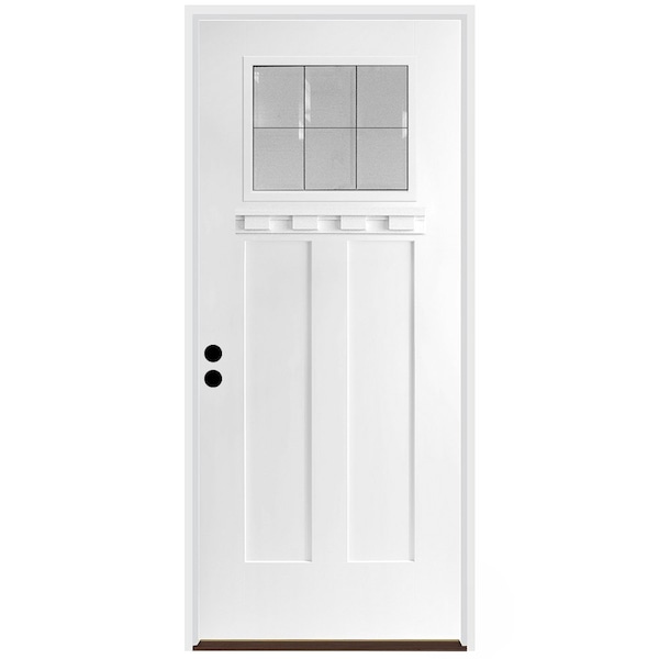 CODEL Doors' Fiberglass Front Doors are built to last and our 3-Panel Shaker Exterior Fiberglass door can add substanial curb appeal to your home. This smooth 3-panel shaker fiberglass door comes with 6-lite patina glass in a 3-Lite frame and dentil show for a true craftsman design. The fiberglass doors are virtually maintenance free and won't dent, warp rot, or split. Our premium prehung door unit almost eliminates air and water inflitration with a variety of premium features. Door comes primed and ready to paint any color to match your home's style.