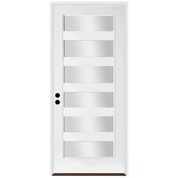 CODEL Doors' Fiberglass Front Doors are built to last and our contemporary door can add substanial curb appeal to your home. This smooth flush contemporary door with 5-lites of glass . The fiberglass doors are virtually maintenance free and won't dent, warp rot, or split. Our premium prehung door unit almost eliminates air and water inflitration with a variety of premium features. Door comes primed and ready to paint any color to match your home's style.
