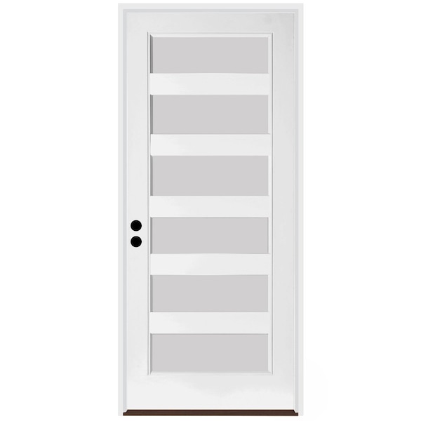 CODEL Doors' Fiberglass Front Doors are built to last and our contemporary door can add substanial curb appeal to your home. This smooth flush contemporary door with 5-lites of glass . The fiberglass doors are virtually maintenance free and won't dent, warp rot, or split. Our premium prehung door unit almost eliminates air and water inflitration with a variety of premium features. Door comes primed and ready to paint any color to match your home's style.