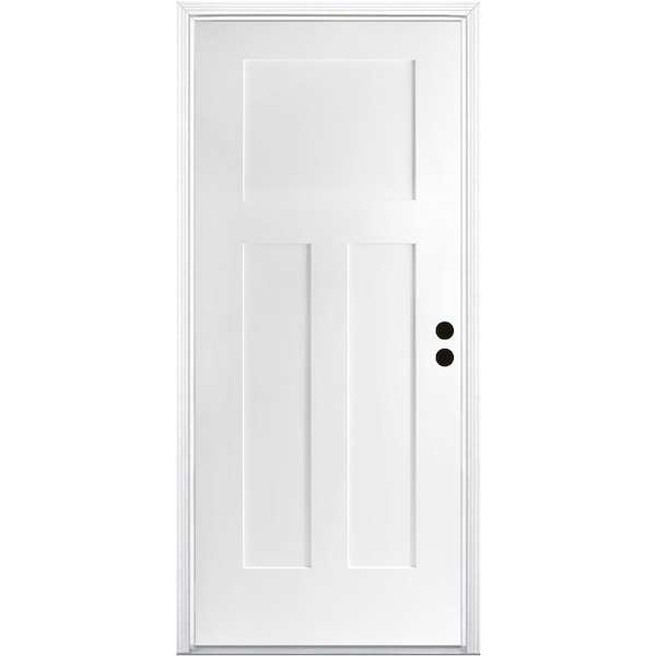 CODEL Doors' Fiberglass Front Doors are built to last and our 3-Panel Shaker Exterior Fiberglass door can add substanial curb appeal to your home. This smooth 3-panel shaker fiberglass door . The fiberglass doors are virtually maintenance free and won't dent, warp rot, or split. Our premium prehung door unit almost eliminates air and water inflitration with a variety of premium features. Door comes primed and ready to paint any color to match your home's style.