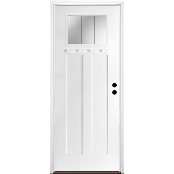 CODEL Doors' Fiberglass Front Doors are built to last and our 3-Panel Shaker Exterior Fiberglass door can add substanial curb appeal to your home. This smooth 3-panel shaker fiberglass door comes with 6-lite patina glass in a 3-Lite frame and dentil show for a true craftsman design. The fiberglass doors are virtually maintenance free and won't dent, warp rot, or split. Our premium prehung door unit almost eliminates air and water inflitration with a variety of premium features. Door comes primed and ready to paint any color to match your home's style.