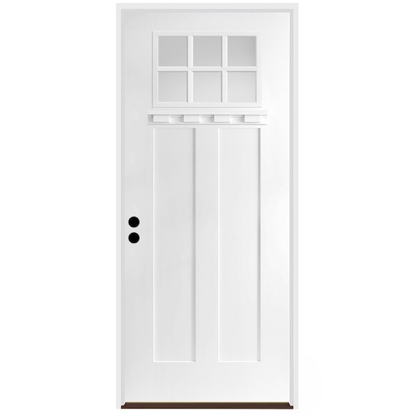 CODEL Doors' Fiberglass Front Doors are built to last and our 3-Panel Shaker Exterior Fiberglass door can add substanial curb appeal to your home. This smooth 3-panel shaker fiberglass door comes with clear glass in a 6-Lite frame and dentil show for a true craftsman design. The fiberglass doors are virtually maintenance free and won't dent, warp rot, or split. Our premium prehung door unit almost eliminates air and water inflitration with a variety of premium features. Door comes primed and ready to paint any color to match your home's style.