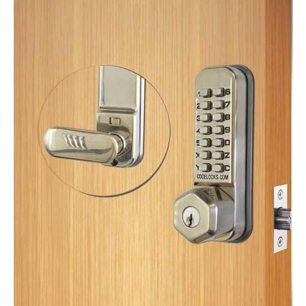 Mechanical Push Button Lockset, Handle Type Knob, Function Entry with Key Override, Key Override Options Standard SC1 Keyway, Hand Nonhanded, Finish Stainless Steel, Door Thickness 1-3/8 in to 2-1/2 in, Keypad 13 Button, Vandal Resistant, Backset 2 3/8 in, 2 3/4 in, ADA Compliant No, No Fire Rated, Case Material Zinc, Series CL200, Latch Length 2 3/4 in, Max. User Codes 1, Standards ANSI/BHMA, Weather Resistant Yes, Includes Code Change Plug, Lock, Mortise Latch, Template, Mechanical