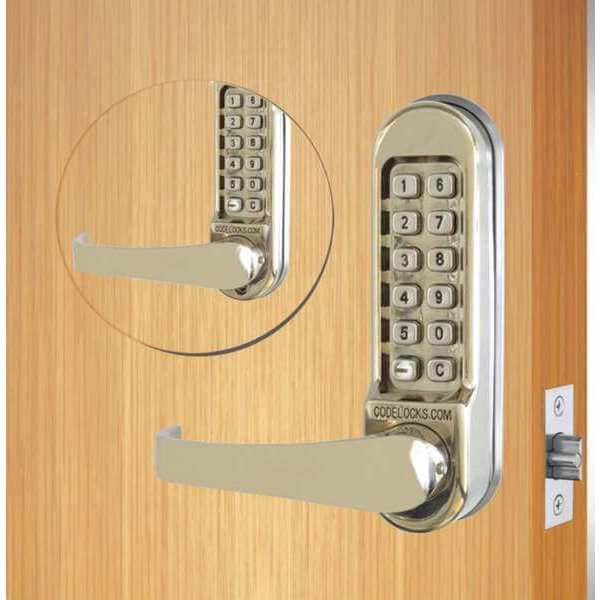 Mechanical Push Button Lockset, Handle Type Lever, Function Passage, Key Override Options None, Hand Nonhanded, Finish Stainless Steel, Door Thickness 1-3/8 in to 2-1/2 in, Keypad 11 Button, Vandal Resistant, Backset 2 3/4 in, ADA Compliant Yes, No Fire Rated, Case Material Zinc, Series CL500, Latch Length 2 3/4 in, Max. User Codes 1, Standards ANSI Grade 1, Weather Resistant Yes, Includes Code Change Plug, Heavy Duty Mortise Tubular Latchbolt Back to Back, Lock, Template, Mechanical