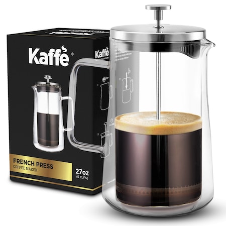 Kaffe French Press Coffee Maker. Double-Wall Stainless Steel (6 Cups 0.8L). Extra Filter Included!
