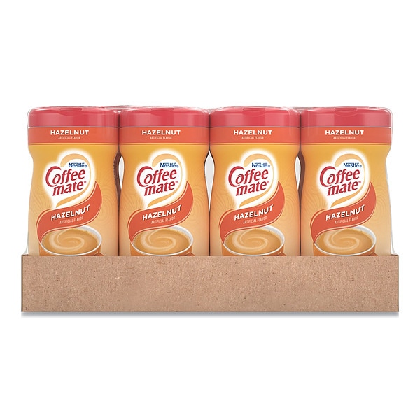 Coffee Creamer, Item Length 12 1/2 in, Item Height 7 1/4 in, Case Width 9 1/4 in, Case Length 12 1/2 in, Case Height 7 1/4 in, Product Type Coffee Creamer, Packs per Case 12, Maximum Storage Temperature 70 Degrees F, Minimum Storage Temperature 35 Degrees F, Item Width 9 1/4 in, Pack Height 7 1/5 in, Pack Length 3 in, Pack Width 3 in, Flavor/Variety Hazelnut, Items per Pack 12, Item Size 15 oz, Container Type Canister, Package Quantity 12