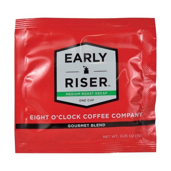 Decaffeinated Early Riser Coffee is made with 100 percent Arabica beans for an irresistibly smooth flavor with a balanced finish. Filter pouch allows you to cleanly brew your favorite coffee without the messy cleanup. Coffee pouch brews 12 cups of coffee.