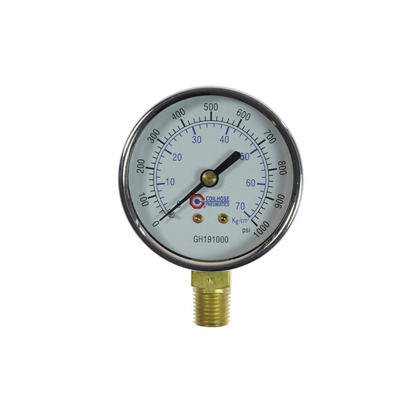2 1/2" Chrome Dial Ga 1/4" Bottom Mount 0-1000 PSI