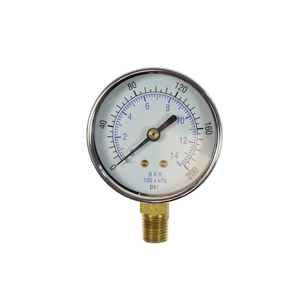 2 1/2" Chrome Dial Gauge 1/4" Bottom Mount 0-200 PSI