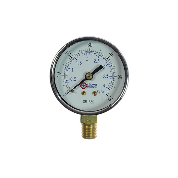 2 1/2" Chrome Dial Gauge 1/4" Bottom Mount 0-60 PSI