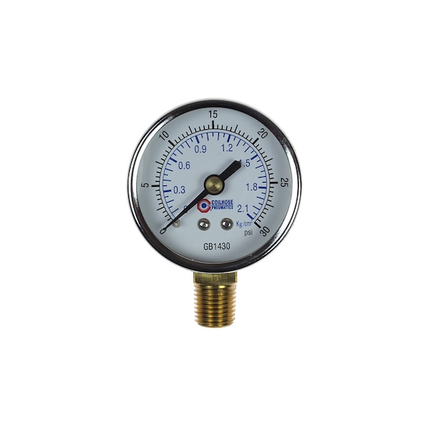 2" Chrome Dial Gauge 1/4" Bottom Mount 0-30 PSI