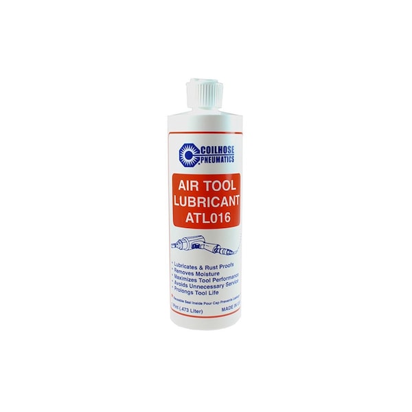 Coilhose Pneumatics ATL016 Air Tool Lubricant, 16 oz. Air tools are an investment; protect them with high quality Air Tool Lubricant. Coilhose Air Tool Lubricant is specially formulated to prolong the life of air tools and accessories. Available in Standard or Wintergrade. Air Tool Lubricant can keep your operation running all year. Air tool lubricant has a one year shelf life.Features: Inhibits the Formation of RustNon-Detergent, Non-Corrosive, Non-Reactive and StableRemoves MoistureTemperature Range: 501/4 F +Wintergrade Temperature Range: -451/4 F +