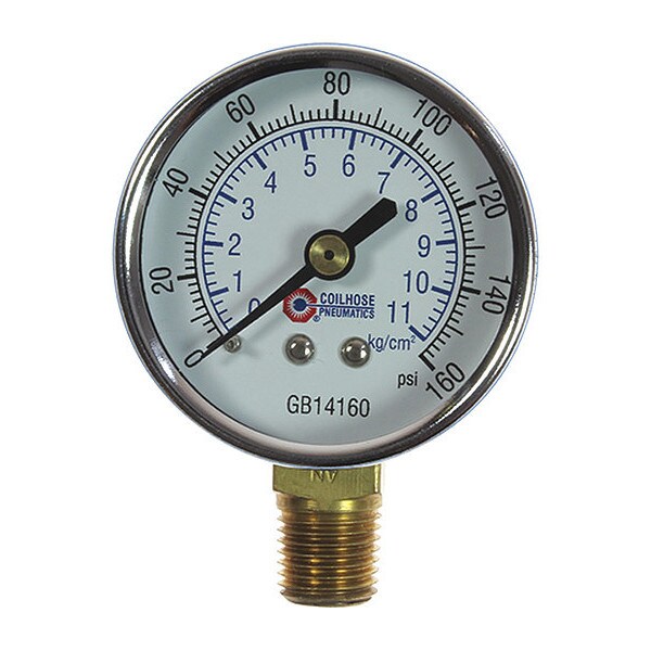 Chrm DG 1/4 In. Bottom Mount 0-160PSI,2 In.