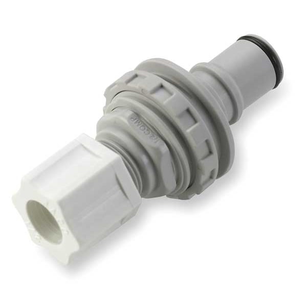 Quick Connection Insert, Application Air, Non-Potable Water, Fitting Side A Connection Type Insert, Fitting Side B Connection Type Compression, Fitting Side B Tube Inner Diameter 3/8 in, Flow Control Type Shut-off, Fitting Material Polypropylene, Overall Length 3 5/16 in, Specific Fitting Shape Panel Mount Insert, Material Grade Not Applicable, Fitting Side B Tube Outer Diameter 1/2 in, Standards NSF/ANSI 51, NSF/ANSI 61, RoHS, Color Gray, Compatible Tube Hardness Not Applicable