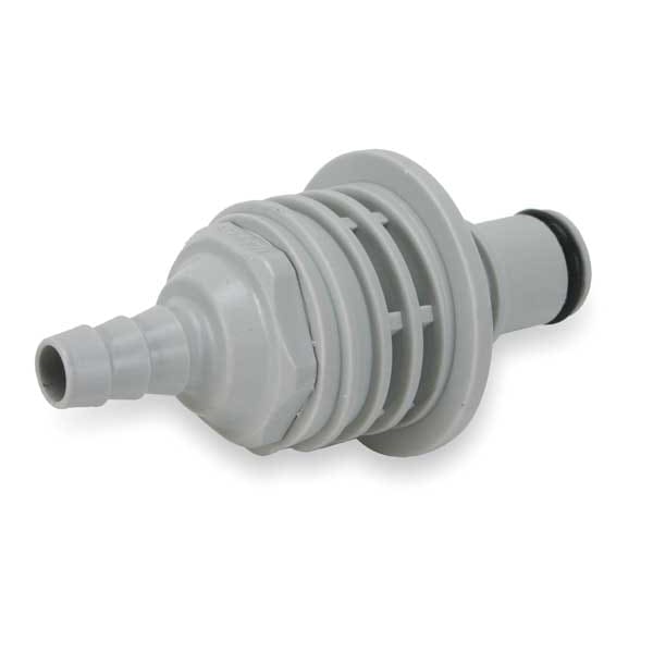 Quick Connection Insert, Application Air, Non-Potable Water, Fitting Side A Connection Type Barbed, Fitting Side B Connection Type Insert, Fitting Side A Tube Inner Diameter 1/8 in, Flow Control Type Shut-off, Fitting Material Polypropylene, Overall Length 2 1/16 in, Specific Fitting Shape Panel Mount Insert, Material Grade Not Applicable, Standards NSF/ANSI 51, NSF/ANSI 61, RoHS, Color Gray, Compatible Tube Hardness Not Applicable, Compatible Tube Material Not Applicable