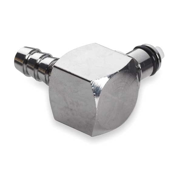 Quick Connection Elbow, Application Air, Non-Potable Water, Fitting Side A Connection Type Barbed, Fitting Side B Connection Type Insert, Fitting Side A Tube Inner Diameter 3/8 in, Flow Control Type Shut-off, Fitting Material Brass, Overall Length 1 7/16 in, Specific Fitting Shape 90 Degrees Elbow Insert, Finish/Coating Chrome Plated, Material Grade CA360, Compatible Tube Hardness Not Applicable, Compatible Tube Material Not Applicable, Compatible Tube Wall Thickness Not Applicable