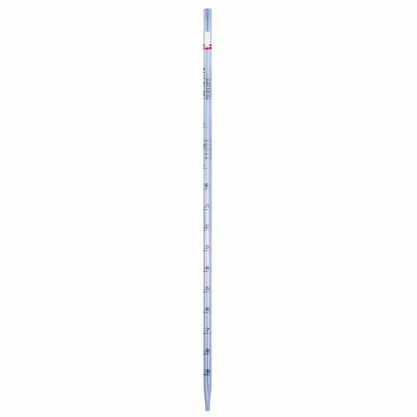 Designed for accurate and rapid fluid dispensing; these polystyrene pipettes are sterile, pyrogen free and utilize a unique lint-freefilter plug to prevent overfilling. The filter plug eliminates lint fibers and ensures plug stays in place. The sharp, black, highly legible permanent graduations prevent ambiguity and precise reading and accurate dispensing to ±:2%. Reverse graduations show volume removed or remaining on all pipettes larger than 1mL. Generous negative graduations provide additional pipetting volume. Pipettes are made from transparent medical grade polystyrene sterilized by gamma irradiation. Each lot is tested for endotoxins (0.5 Eu/mL) (ISO T0993-11), cytotoxicity (ISO10993-5) and are non-hemolytic (ISO10993-4). Ideal for tissue culture applications. Pipettes are supplied individually wrapped in a fiber-free paper & plastic combination that is easy to open. The uniform mouth piece fits all major pipettors and have color coded TD rings for ease of identification. 1.1mL bacteriological pipettes meet the A.P.H.A. standards for the examination of dairy products. Calibrated TD with blow out. Meets ASTM E934. Dispenser box allows user to remove pipettes without opening top. Universal stacking design requires less laboratory space and each box is color coded for easy recognition.