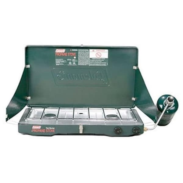 - Stove runs about 1 hour on single propane cylinder with both burners on high