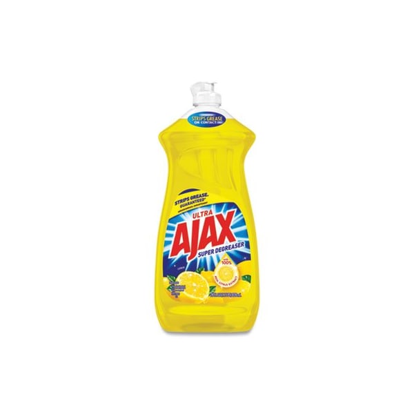 Ajax Ultra Triple Action Dish Liquid provides a pleasant and powerful cleaning experience while leaving your dishes sparkling clean. This product cuts grease to get dishes clean and spotless. This product also washes away bacteria on hands when used as a handsoap, to wash away dirt and bacteria from hands, wash them for 20 seconds under clean running water and fights odor on dishes. This dishwashing liquid is kosher and phosphate free. Super DegreaserStrips grease from the dirtiest dishes. Application: Hand Dishwashing; Applicable Material: Ceramic; Glass; Metal; Plastic; Chemical Compound: Ammonium C12-15 Pareth; Dirt Types: Cooked-On Grease; Dirt; Food Particles; Organic Matter.