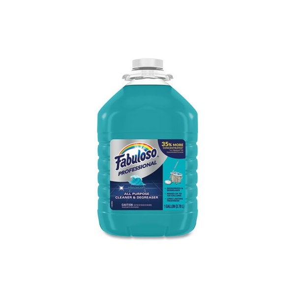 Fabuloso Professional is an all-purpose cleaner and degreaser that is effective for a wide variety of cleaning applications. The Fabuloso Professional formula deep cleans to remove grease and soils while leaving a long-lasting fragrance. Its neutral pH makes product safe for surfaces. No rinsing step needed in floor cleaning application. Application: All-Purpose; Bathrooms; Kitchen; Applicable Material: Ceramic; Fiberglass; Glass; Metal; Plastic; Vinyl; Hard Surfaces; Dirt Types: Grease; Soil; Scent: Ocean Cool.