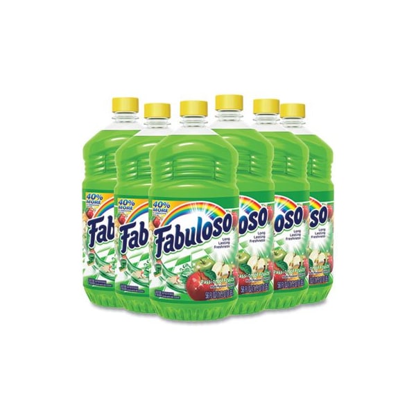 Fabuloso Multi-Purpose Cleaner leaves a fresh scent that lasts. The fragrance leaves an irresistible scent your family and guests will notice. It comes in a convenient, easy-pour bottle. This Fabuloso cleaner is easy to use, so there is no need to rinse, and it leaves no visible residue. Application: All-Purpose; Bathrooms; Kitchen; Applicable Material: Ceramic; Fiberglass; Glass; Metal; Plastic; Vinyl; Hard Surfaces; Dirt Types: Dust; Grease; Grime; Soil; Scent: Passion Fruit.