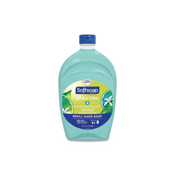 Softsoap Antibacterial Liquid Hand Soap cleans while leaving your skin feeling soft and protected. It is clinically proven to eliminate 99.9% of bacteria in a handwashing test vs. the following common harmful bacteria: s. Aureus & E. coli. Due to its unique formula, the liquid hand soap pump should only be refilled with Softsoap Antibacterial Liquid Hand Soap. It is best to wash hands with soap and clean running water for 20 seconds. Soap Type: Liquid; Application: Hand; Capacity Volume: 50 oz; Scent: Fresh.