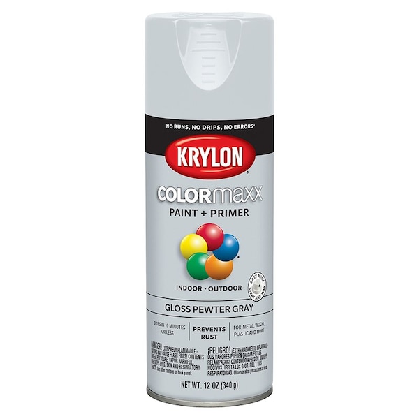 12 Oz Krylon Pewter Gray Paint & Primer Spray Paint, Gloss