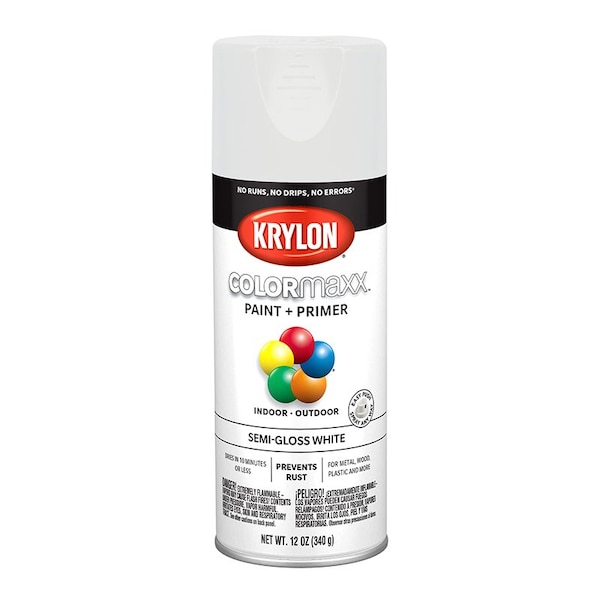 12 Oz Krylon White Paint & Primer Spray Paint, Semi-Gloss