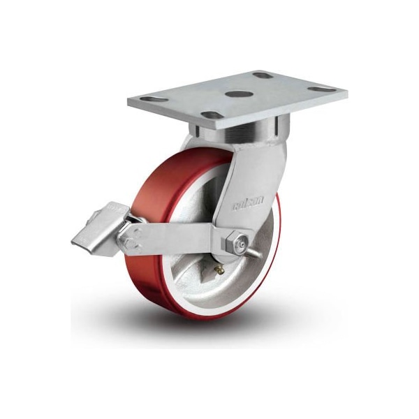 6 Series Swivel Plate Caster Polyurethane With Brake 8 Dia. 1500 Lb