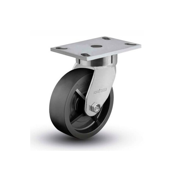 Colson 6 series swivel plate caster 6.08289.839 - solid polyolefin 8" dia. 900 lb. Cap. single ball raceway kingpinless construction zinc plated economical wheel option impervious to most chemicals straight roller bearing in wheel zerked raceway & axle for easy maintenance standard top plate