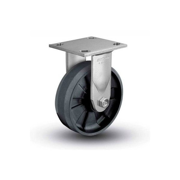 Colson 4 series rigid plate caster 4.04108.539 - solid nylon 4" dia. 800 lb. Cap. zinc plated glass filled nylon wheel for easy mobility without damaging concrete floors will not absorb water like phenolic wheels will straight roller bearing in wheel zerked axle for easy maintenance standard top plate