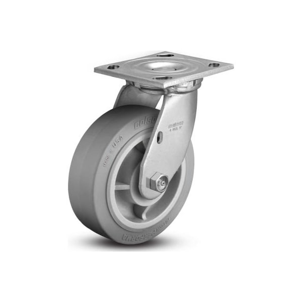 Colson 4 series swivel plate caster 4.08199.459 - rubber on polyolefin 8" dia. 675 lb. Cap. zinc plated non-marking tread with superior floor protection straight roller bearing in wheel zerked raceway & axle for easy maintenance standard top plate