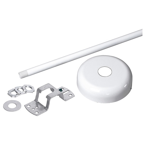 Swivel Stem, Mounting Style Suspended, For Use With Individual or Continuous Row Mounting of Most Surface and Industrial Fixtures, Overall Width 1/2 in, Overall Length 18 in, Overall Height 18 in, Includes Swivel Canopy, (1) 18 In. stem, 45 degree swivel, Material Steel, Finish Unfinished, Color White