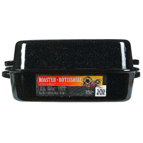 - • Granite Ware covered roaster won't discolor or alter food taste
