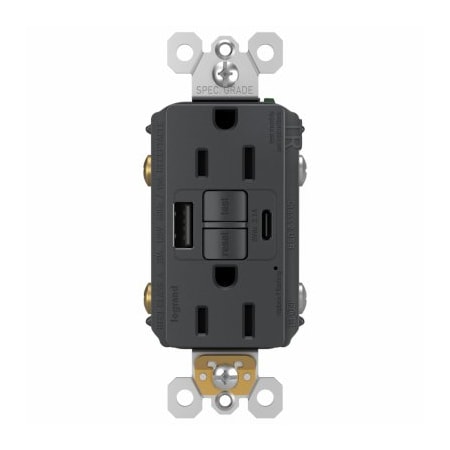 TRUSBAC15 Receptacle, 2 Pole, 5 A, 125 VAC, 2 USB Port, Type A, C USB, Ivory