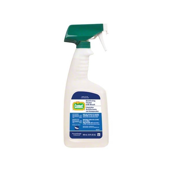 Comet Pro Disinfecting Cleaner with Bleach is a multi-purpose spray designed for cleaning and disinfecting various surfaces. It contains bleach for effective germ and stain removal. Ideal for use in professional and commercial environments, it helps maintain hygiene by eliminating bacteria and viruses. The formula is suitable for hard, non-porous surfaces, providing a thorough clean and disinfectant action. Packaged in a pack of 8 for ease of use, this cleaner supports routine sanitation tasks in kitchens, bathrooms, and other areas requiring disinfecting.