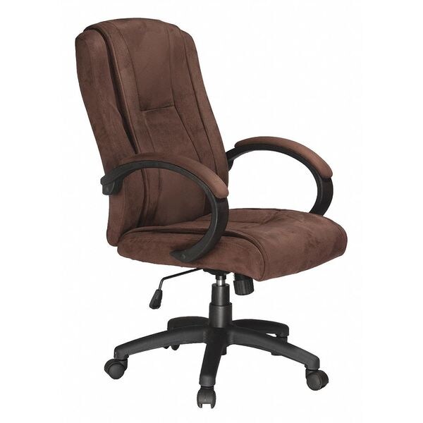 Executive Chair, Overall Width 24 1/2 in, Overall Depth 28 in, Seat Color Brown, Frame Color Black, Back Color Brown, Seat Depth 20 in, Seat Width 20 in, Seat Material Microfiber, Back Material Microfiber, Frame Material Nylon, Weight Capacity 300 lb, Standards ANSI/BIFMA, Back Height 26 in, Back Width 20 1/2 in