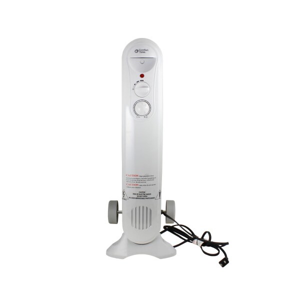 Comfort Zone Oil-Filled Radiator /Convection Heater, Gray. Slim design. 3 Heat Settings: 500 / 700 / 1200 Watts. Adjustable thermostat. Safety overheat protection system and safety tip-over switch. Oversized wheels for easy movement. 24.5" H x 8.5" W x 13" L.